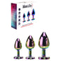- Rainbow chrome-plated aluminium butt plugs with jewel bases
