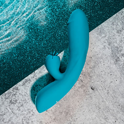 This curvy dual vibe has an extraordinary pleasure point built right in - a 3-tongue 'flicker' that targets your primary erogenous zone to deliver pure ecstasy. Meanwhile, a powerful motor in the main shaft rocks your world with deep vibrations for an unparalleled dual experience.