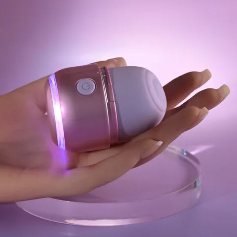 Tap into Vacation Vibes anytime with this chunky pink-pearl iridescent toy that delivers pulses to wherever you crave them most. The discreet textured canister lid pops off to reveal the rounded silicone tapping head. A colorful changing light in the base and a one-touch control button make it effortless to navigate.