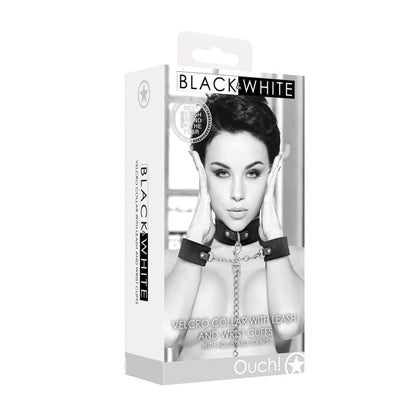 OUCH! BW Velcro Collar With Leash And Hand Cuffs - Black Restraints